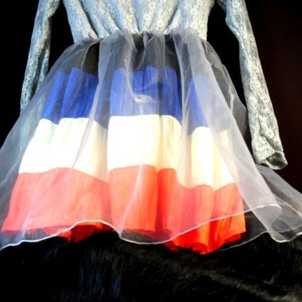 Платье "Снежана" бальное с кругом-подьюпником, серебристая талия, на плечах рюши
