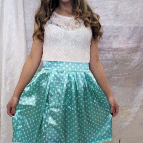 Платье белый ажур корот.рукав + юбка в горошек мята или беж, р.44,44,44,46,48