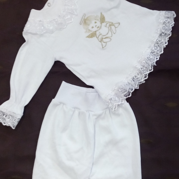 Костюм ясельный белый с серебристым ангелочком, р.22