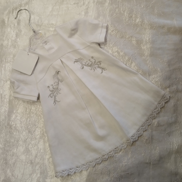 Платье крестильное 100% лён с серебряным узором ПЛ-19