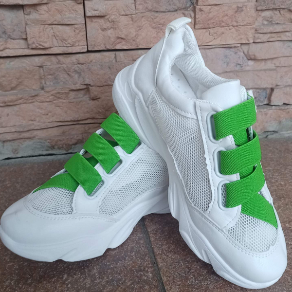 Кроссовки сетка белые с зеленой резинкой