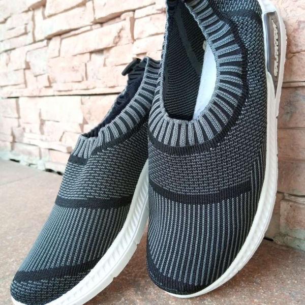 Мокасини текстиль сірі з чорним А102-2