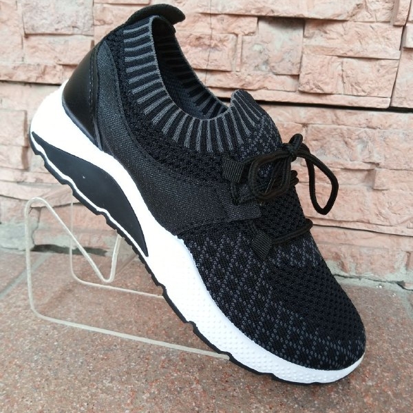 Кросівки текстиль чорні з сірими ромбами на шнурках Х-41
