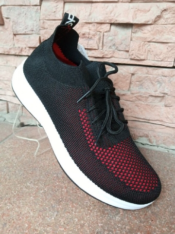 Кроссовки черно-красные со шнурками текстиль дышащие AGA-2-1