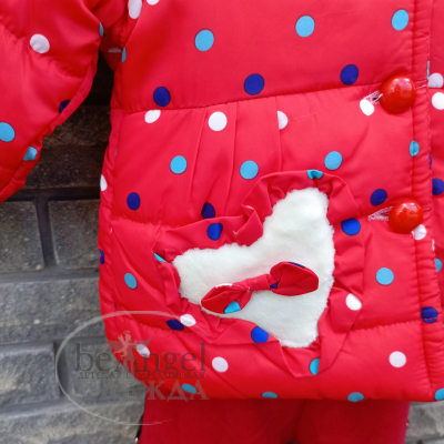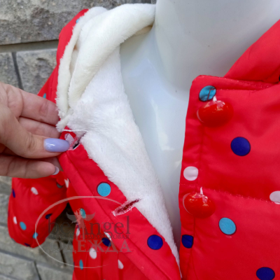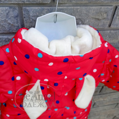 Куртка дитяча червона з різнокольоровим горошком та з вушками на каптурі, р.L(2-3 роки); XL(3-4 роки); XXL(4-5 років) (OD-КР-8240)