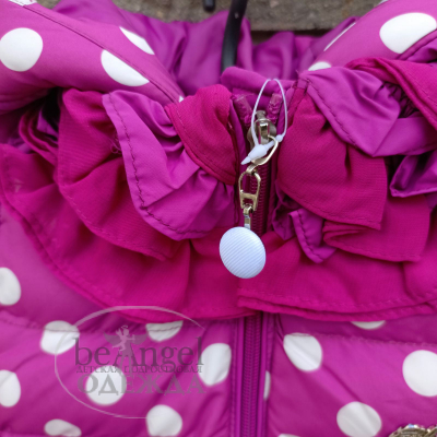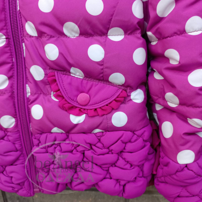 Куртка малтновая с рюшами и горошком застёгивается на молнию.