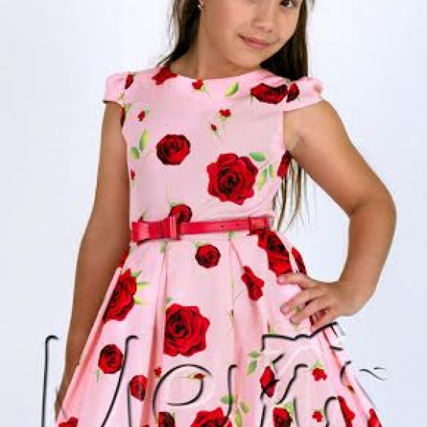 Платье с розами розовое