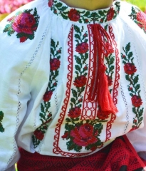 Вышиванка девочкам "Маки и голубые астерсы" разноцветный узор вышитый крестиком, короткий рукав 0029