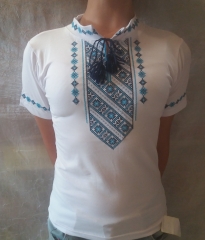 Вышиванка мальчикам синяя вышивка, короткий рукав 0024