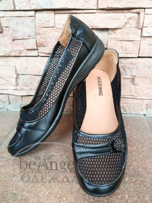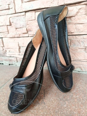 Балетки женские чёрные "Цветок" (13091)