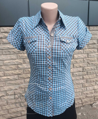 Блуза синя в клітинку 42,44,46,48 (OD-РУ-8451)