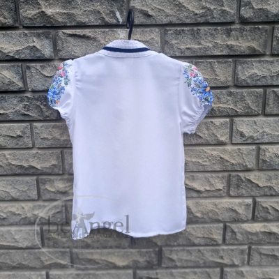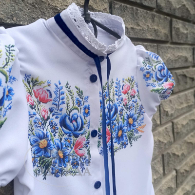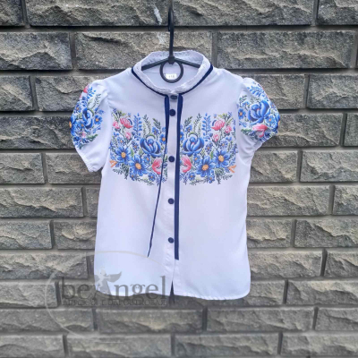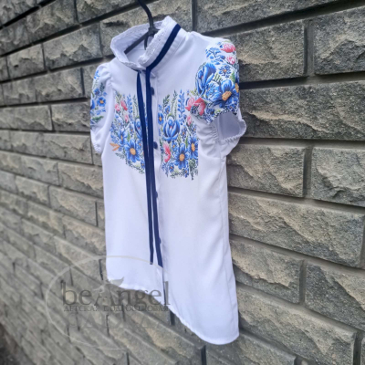 Блуза-вишиванка з сублімацією, сині квіти (20721)