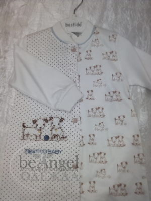 Человечек ясельный белый "Собачки беж" на кнопках, Турция, р.56,62,68 (ТО-ЧЕ-8793)