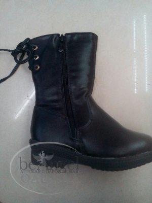 Чоботи дитячі чорні із зав'язками ззаду і стразами збоку (OD-СЗ-6006)