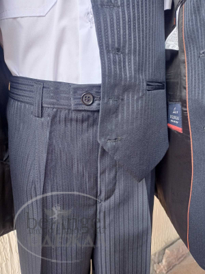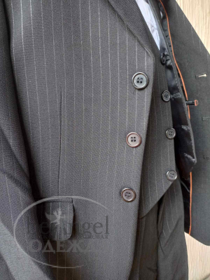 Класичний костюм 3-ка, т.синій з блиском (майже чорний), чорний в смужку (6K-КС-8819)