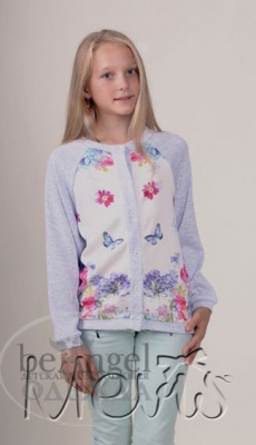 Кофта "Mevis" св.сіра з квітами (МД-КО-6441)