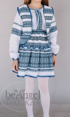 Костюм ЛЬВОВ тройка синяя вышивка, р.134-140 (ЛС-ВЫ-9452)