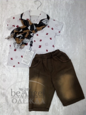 Костюм праздничный "Осень" рубашка бриджи шарфик Турция, р. 2, 3 (ТО-КС-8792)