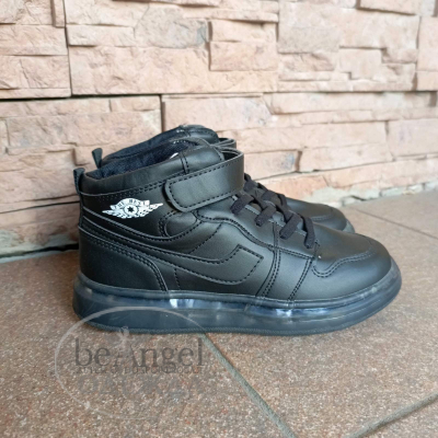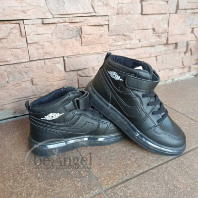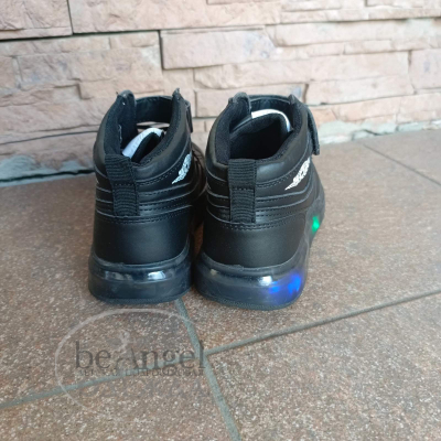 Кросівки THE BEST високі на липучці з LED підсвіткою, колір чорний (14236)