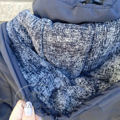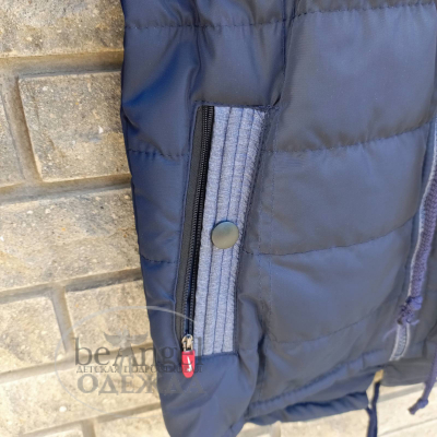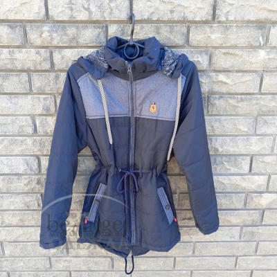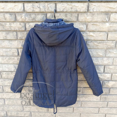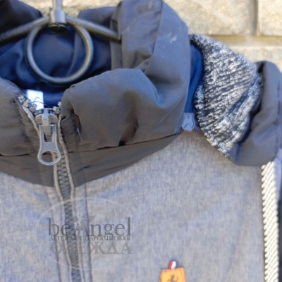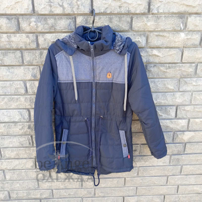 Куртка демісезон синя з сірими рябими вставками, подовжена, каптур відстібається (OD-КР-9019)