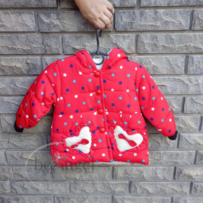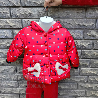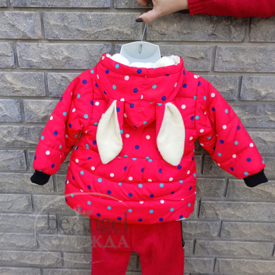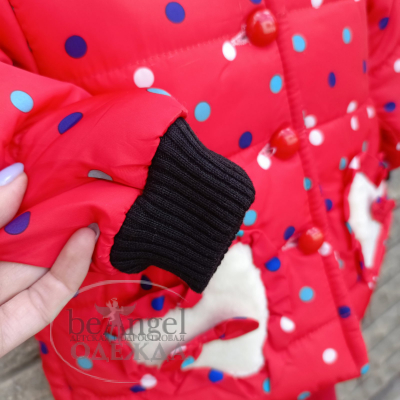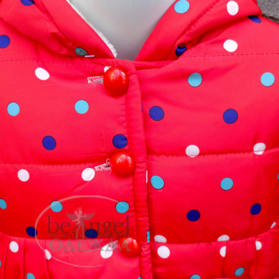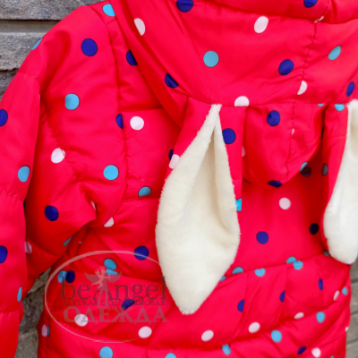 Куртка дитяча червона з різнокольоровим горошком та з вушками на каптурі, р.L(2-3 роки); XL(3-4 роки); XXL(4-5 років) (OD-КР-8240)