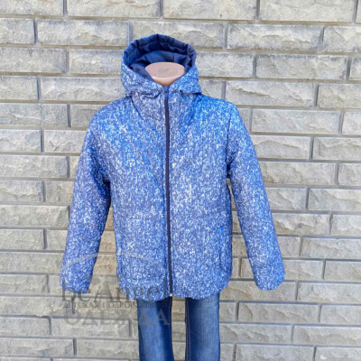 Куртка дитяча демісезон синя ряба з капюшоном на блискавці (6K-КР-8269)