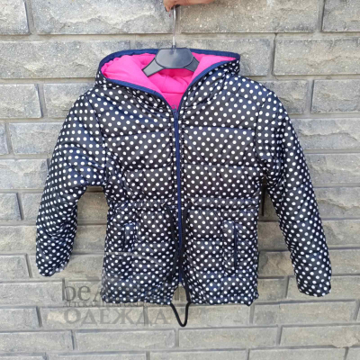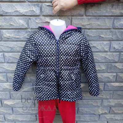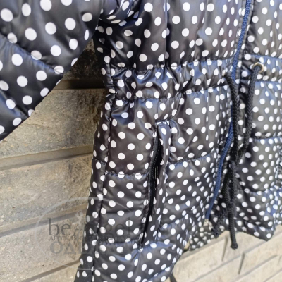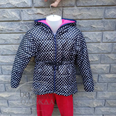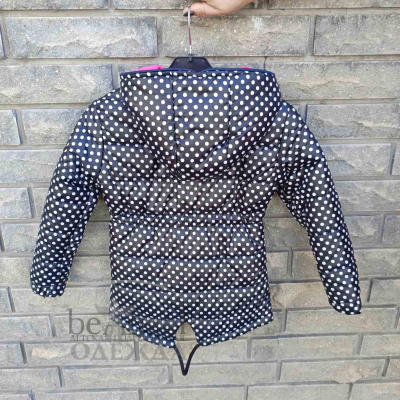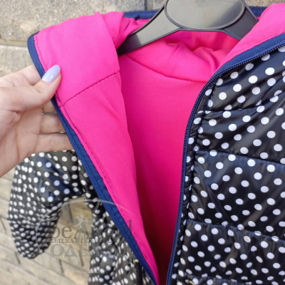 Куртка-вітровка дитяча чорна в білий горох з рожевою підкладкою (OD-КР-9795)
