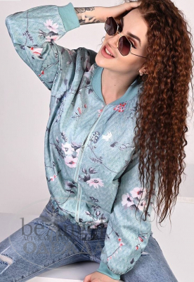 Куртка жіноча "Білі квіти" 00296721 м`ята (19851)