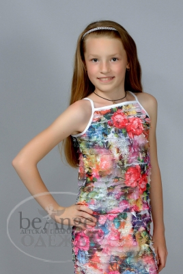 Отличный костюм. Сразу покупали для носки на каждый день, потому стало жалко и начали одевать по праздникам. Очень красивые мелкие рюшки. Дочка просто маленький ангелочек в нем. Кстати, покупали дочке на 6 лет, а потом оказалось, что знакомые купили тот же размер, но на 11 лет. Только на нашей он как костюмчик с майкой которая ложится наверх юбки, а для них это красивые юбка и топик. Короче и мы и они в восторге. А мы так вообще, ведь наша подрастет, а он тоже будет модным шикарным костюмом только уже с топиком.