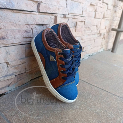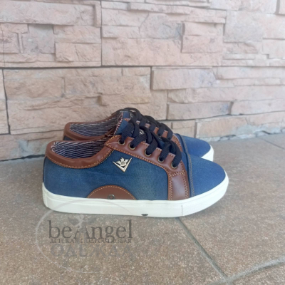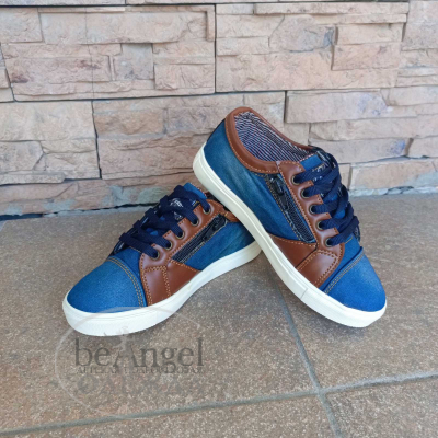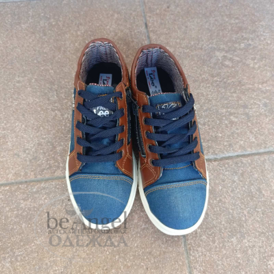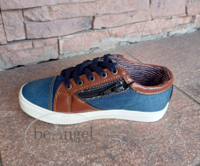 Мокасини "Lее" джинс з коричневими вставками на шнурках, біла підошва (ХЗ-МО-11100)
