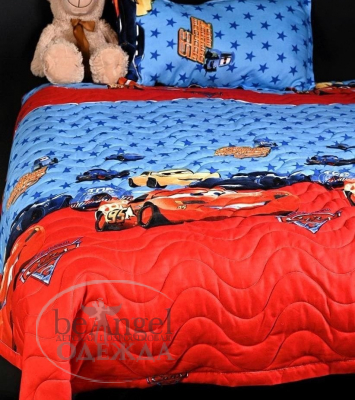 Одеяло с наволочкой 07-30 "Тачки" синее, голубое (19528)