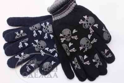 Перчатки черные с черепами (ДА-ПЕ-6128)