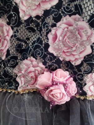 Платье праздничное темно-синий гипюр с розами и юбка-вуаль, Турция - 92; 98; 104; 110 (МП-ПП-7142)
