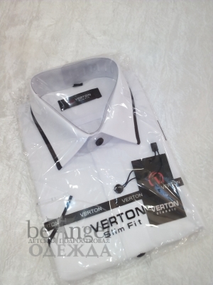 Рубашка белая VERTON с черными вставками на вороте и рукавах, короткий рукав, р.29-36 (РИ-РУ-8822)
