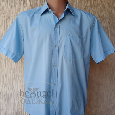 Рубашка голубая однотонная, короткий рукав, р.42/44 (МА-РУ-8783)