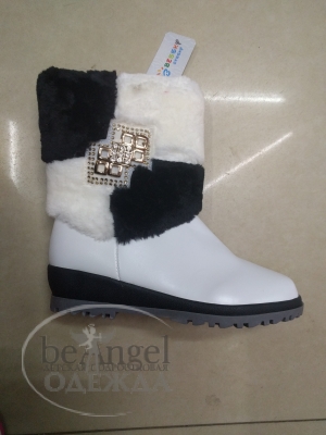 Сапоги черно-белый для девочки с мехом сверху шахматка (ДА-СЗ-5803)