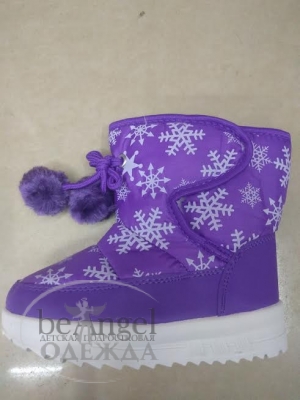 Сапоги-дутики детские сиреневые со снежинками бубонами с двумя липучками (OD-СЗ-5937)