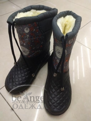 Сапоги-дутики серые с оранжевыми и белыми фигурками, материал - Эва (ГФ-СЗ-5755)