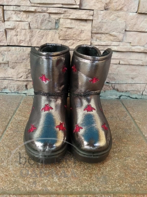Сапожки-валенки с блеском и красными пчелками "Gucci" (15223)