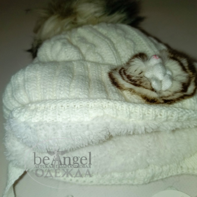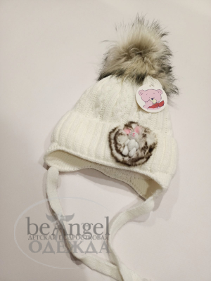 Шапка для дівчинки на зав'язках із зайчиком ДШ (18774)