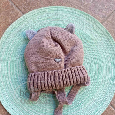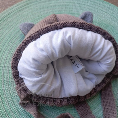 Шапка Томас D961 з вушками, на зав'язках, синтепон, кава (20885)