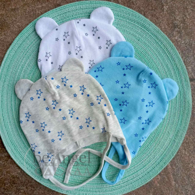 Шапка "Зірки" 449Т на зав'язках, трикотажна, подвійна (20571)