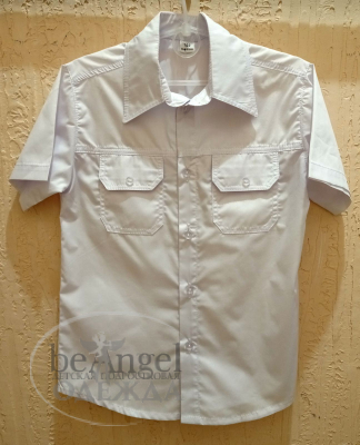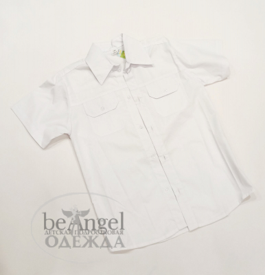 Сорочка біла, короткий рукав з кишенями (19317)