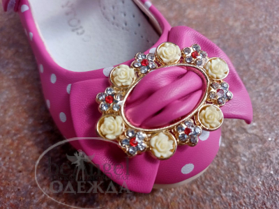 Туфлі "Брошка з трояндами" малинові в білий горох (ОБ-ТУ-7068)