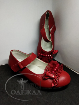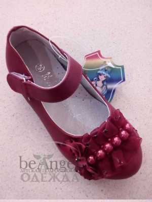 Туфли вишневые с бусинками и рюшками р.26,27,28,29,30,31 (OD-ТУ-7208)