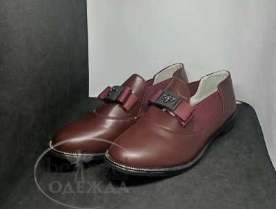 Туфлиі з бантом і прикрасою, бордо (18747)