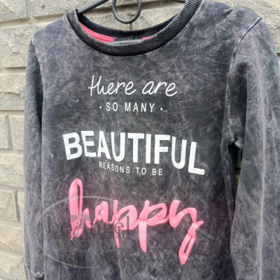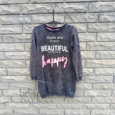 Туніка "Happy", рукав 3/4, сіра з написами ДШ (16392)
