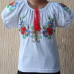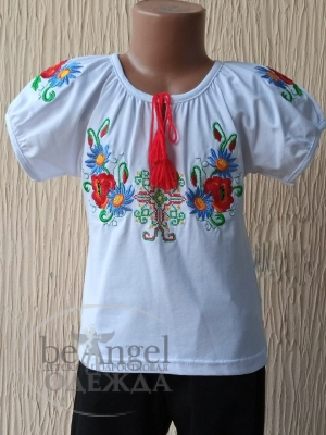 Вышиванка девочкам "Маки и голубые астерсы" разноцветный узор вышитый крестиком, короткий рукав 0029 (МА-ВЫ-10977)