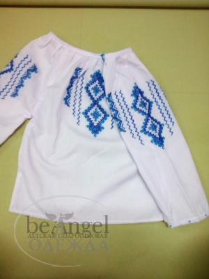 Вышиванка для девочки с сине-голубой вышивкой длинный рукав (ЛС-ВЫ-5224)