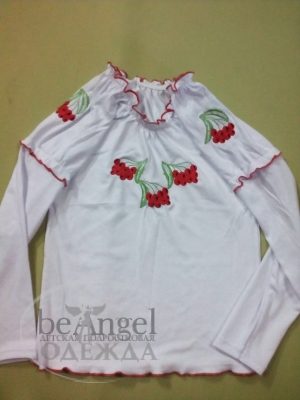 Вышиванка "Рябина" белая для девочки длинный рукав (VI-ВЫ-7601)
